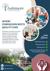 Ashmere- Family of Care Homes WHERE COMPASSION MEETS QUALITY CARE At Ashmere, we believe everyone deserves to live with dignity, comfort, and purpose. With award-winning care homes across Derbyshire, we offer residential, dementia, nursing, and respite care in warm, family-like environments. Our Care Residential Care Dementia Care Nursing Care Specialist D/deaf & hard of hearing household Telephone: 01773 747 044 Website: ashmere.co.uk ...