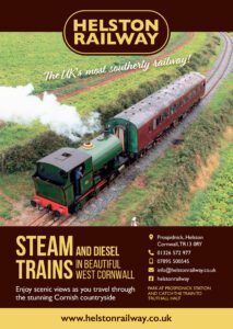 Helston Railway The UK’s most southerly railway! STEAM AND DIESEL TRAINS IN BEAUTIFUL WEST CORNWALL Enjoy scenic views as you travel through the stunning Cornish countryside. Website: www.helstonrailway.co.uk Telephone: 01326 572 977 Mobile: 07895 500545 Email: info@helstonrailway.co.uk Facebook: helstonrailway Location: Prospidnick, Helston, Cornwall, TR13 0RY Park at Prospidnick Station and catch the train to Truthall Halt ...
